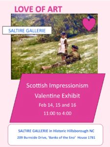 Join us for the Opening Reception of Proximity: Invitational Exhibit of 10 NC Artists Friday, Jan 30, 6-9pm The participating artists are: Laura Berendsen Hughes, Doug Dotson, Peter Filene, Beau Lyday, Lauren Markley, Annie Nashold, Carol Retsch-Bogart, Erica Stankwytch Bailey, Brad Tucker, and Michele Yellin. This dynamic exhibition will include works in a variety of … Continued |