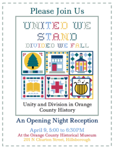 Experience American history through the unique perspective of one of North Carolina’s oldest and most historically significant towns, with a guided walking tour of downtown Hillsborough. | Saturdays 10:30am-12:30pm | $10 Experience American history through the unique perspective of one of North Carolina’s oldest and most historically significant towns through this visual based, seated tour. Established in 1754 as the seat of government for Orange County, Hillsborough’s colonial legacy and signs of its importance in North Carolina and American history can be seen everywhere. |