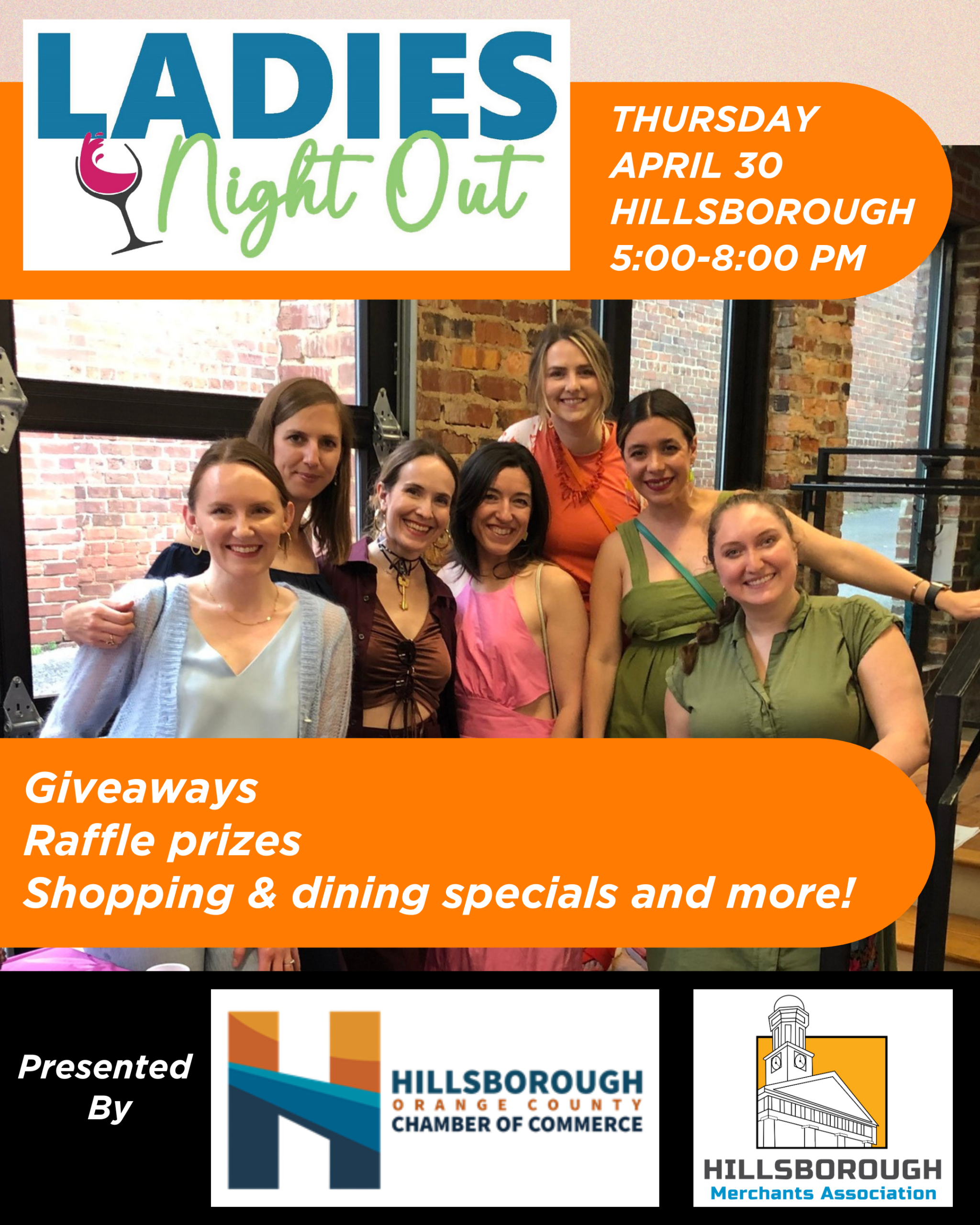 Downtown Historic Hillsborough 101 S Churton Street, Hillsborough, NCGather your girlfriends and join us Thursday, April 30, for a special one-day event at businesses throughout Hillsborough offering shopping, dining and drink specials, giveaways, demonstrations and more.